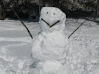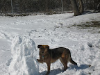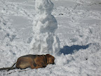 I caught her in the act with this one. She'd knocked off his head, and in a few short moments he'd be without a torso too. She's a really sweet puppy, so I'm guessing she just thought she was playing. Or she was getting back at me for throwing snowballs at her...