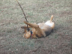 We had an ice storm, and you can see here she's about to take on a big stick.